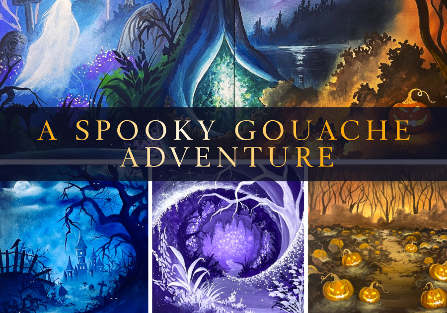 7 original Halloween-inspired gouache tutorials full of spooky details to help you explore your paints and develop your skills in a fun and seasonal way.