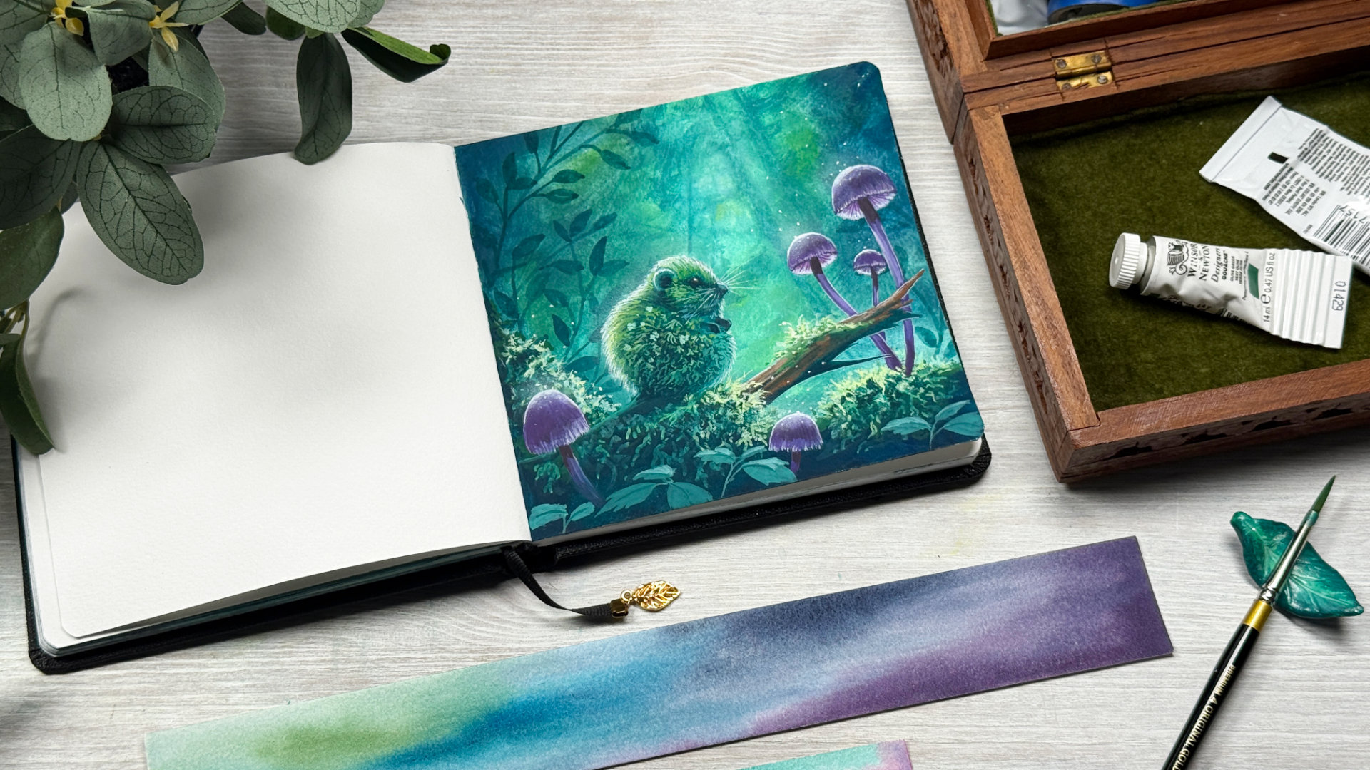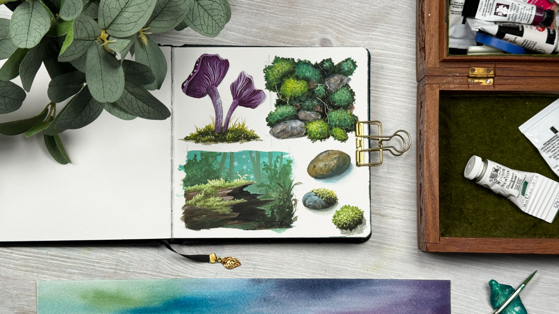 Explore the textures of our moss-bound world with four mini projects. We’ll paint mushrooms, mossy rocks, a moss patch, and a moss-covered stump.