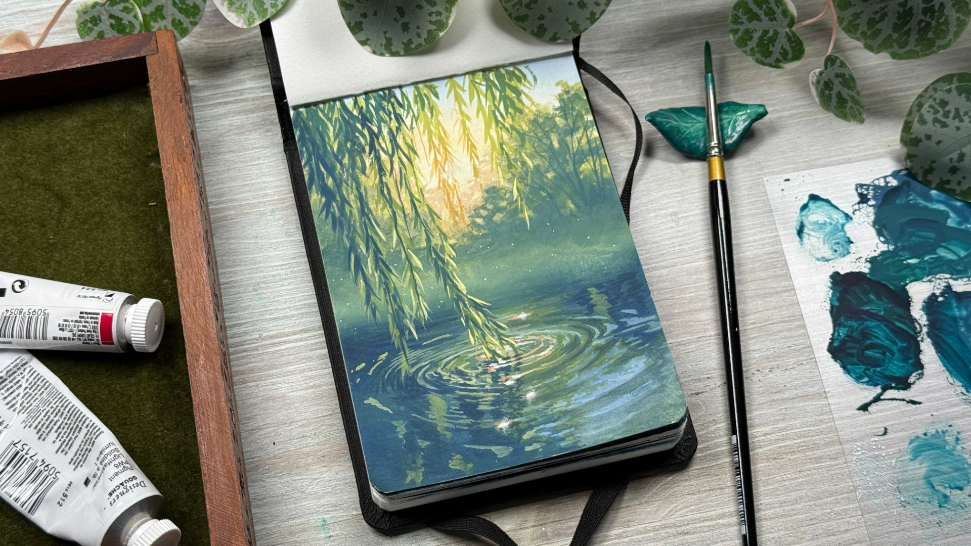 In this project, we'll be painting this tranquil pool glistening under the warm evening light.